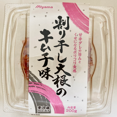 | 原材料 | 割り干し大根(調味戻し)(大根(中国))、砂糖、ぶどう糖果糖液糖、赤とうがらし粉、食塩、にんにく、唐辛子ペースト、かつお節エキス、昆布エキス/調味料(アミノ酸)、酸味料、増粘多糖類、(一部に大豆を含む) |